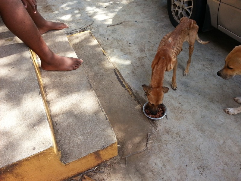 De melding van een zeer mager hondje op de San Juanweg stond op 27 okt op de FB. Een vrijwilligster is gaan kijken en na onderzoek door haar en Feed Friends Foundation, bleek Juan een eigenaar te hebben. Naast Juan wonen er nog 2 honden daar (een zwarte en een bruine, die er een stuk beter ui tzien dan Juan)