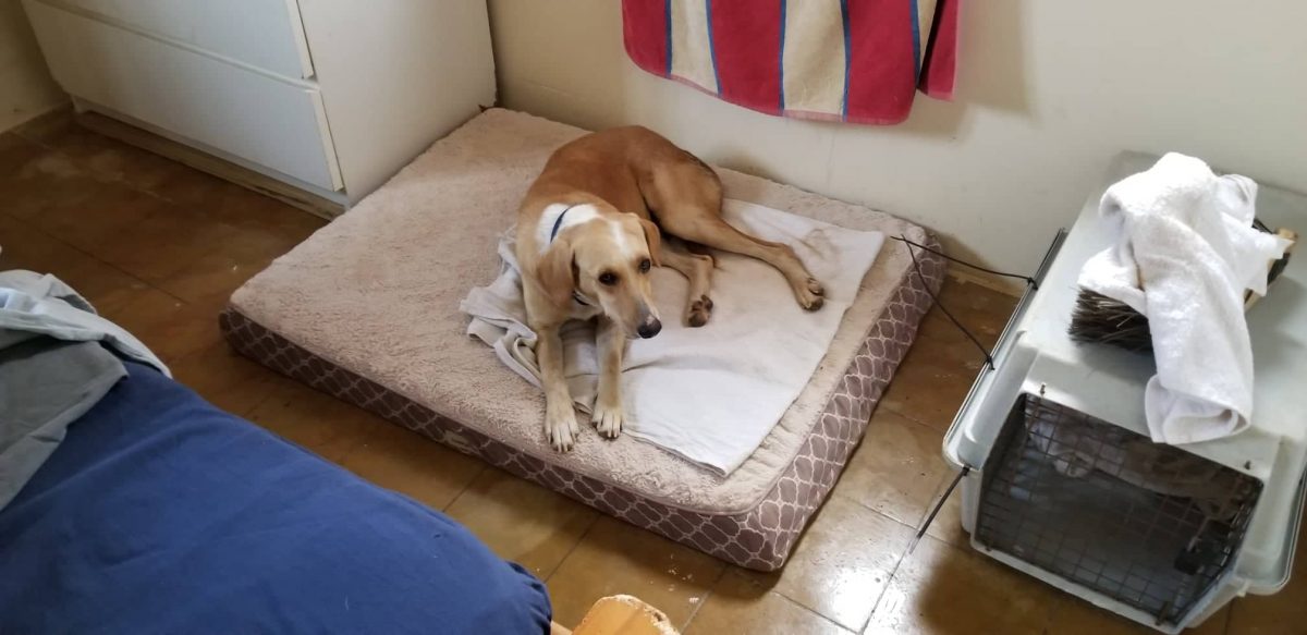 In Julianadorp liep een hoogzwanger beige hond rond. Ze was al door verschillende mensen gezien en door 1 gemeld. Toen ik bij foster Bianca de pups ging halen, vertelde ze dat haar over buren een zwangere hond net van straat hadden gehaald. Dat was dus Julie. Ik heb Julie meteen naar de dierenarts gebracht en dezelfde dag is ze gesteriliseerd. Ze heeft daarna een paar weken bij Mijn zusje gelogeerd waar ze alle aandacht kreeg en helemaal bij kon komen.