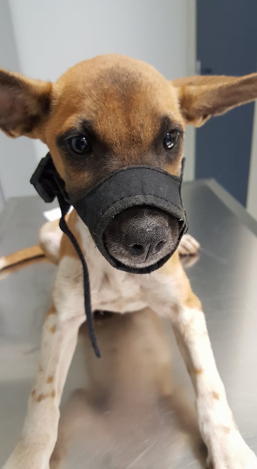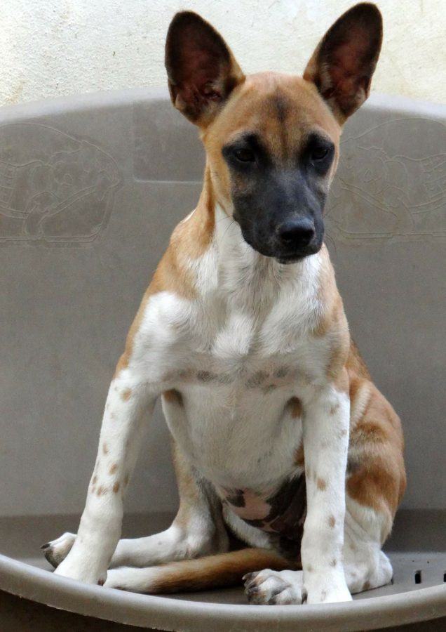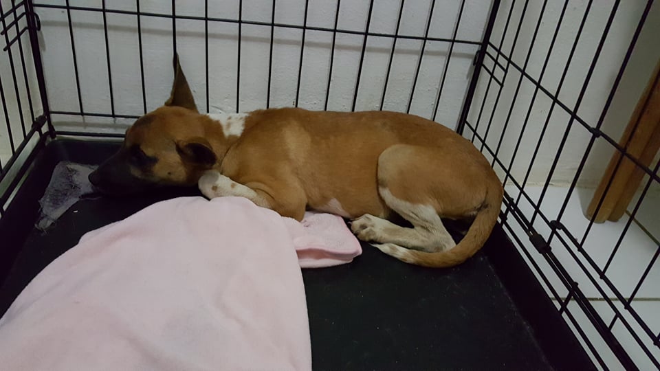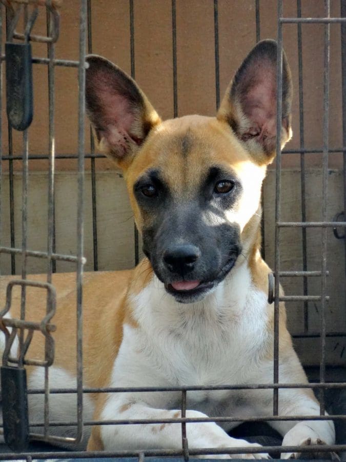 Kathy is gevangen op Knipbaai. Ze zat daar met nog meer kleintjes maar zij was de eerste die in de vangkooi liep. Kathy beet behoorlijk van zich af, bij de dierenarts en thuis ook. Maar na wat doorzetten kon ik haar op schoot nemen, maar ze was nog niet geheel relaxed… en dat is ze ook nooit geworden. Kathy is een van de DOG honden waar we het minst mee kunnen vanwege het feit dat ze zo ontzettend bang is voor mensen.