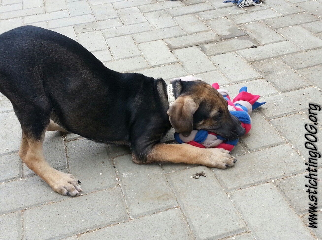 De pups groeien en groeien en spelen en eten en slapen met elkaar. Moeder Kyla is na 6 weken terug gegaan naar haar eigenaar. De 4 Janis pups zijn nog 2 weken bij Janis gebleven. Toen kreeg Janis een bloedneus. Dat betekent karpatenziekte dus aan de doxy. De pups mogen dan niet meer bij haar drinken dus die gingen “alleen ” verder. En dat ging prima ze groeien als kool.