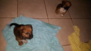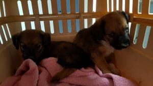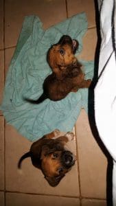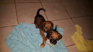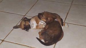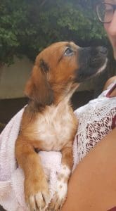 Via een FB vriend kreeg ik te horen dat bij een huis 2 moederhonden puppy’s hadden. De eigenaar wilde ze niet want hij heeft genoeg honden. Ik ben gaan kijken en vond 2 slecht uitziende moederhonden. De ene had 4 pups (3 witte en 1 zwarte) en de ander had 3 pups (2 bruine en 1 witte). De eigenaar wilde de kleine witte houden maar de rest mocht weg. De andere honden zagen er goed uit. Ik heb alle honden ontwormt en nexgard gegeven. de moeders mochten gesteriliseerd maar hadden helaas hondenziekte dus de operatie ging niet door. De eigenaar zou naar de dierenarts gaan voor verdere behandeling en daarna de honden steriliseren.