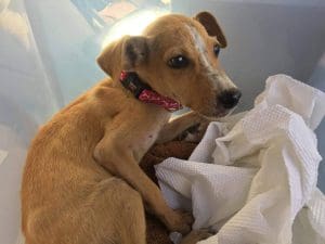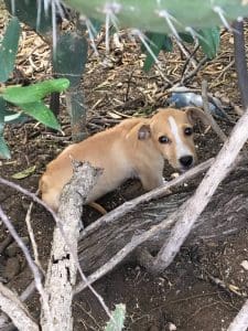 Maar Laika is uiteindelijk tussen de cactussen vandaan gekomen en met Nel mee gegaan naar de dierenarts. Ze zat onder de teken en vlooien, maar was verder ok. Extra aandacht, liefde en goed eten zouden haar goed doen.