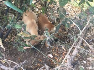 Deze post plaatste Nelly in feb 2019 op FB. Twee pups in de knoek, langs de weg naar Kokomo. Heel schuw.