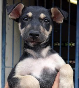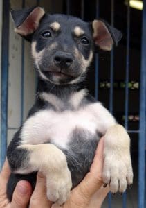 Een boze bewoner kwam naar me toe, ik moest alle honden mee nemen, er waren er nog veel meer. Na lang wikken en wegen besloot ik de ze 4 pups mee te nemen. Moeder had misschien meer pups en deze 4 waren makkelijk te pakken.