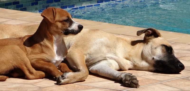 Het zijn 2 vrolijke blije hondjes. Dikke buikjes (van de wormen).