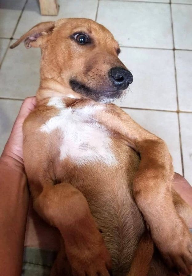 Op een woensdagavond in juni 2018 reed ik net de straat uit om naar cursus bij Kuki&ko te gaan, toen Maron aan de kant van de weg stond. Ik wist zeker dat als ik terug zou komen dat hij of weg zou zijn of plat op straat zou liggen. Dus gestopt, Maron kwam kwispelend naar me toe, dus in de auto en gauw thuis gebracht.