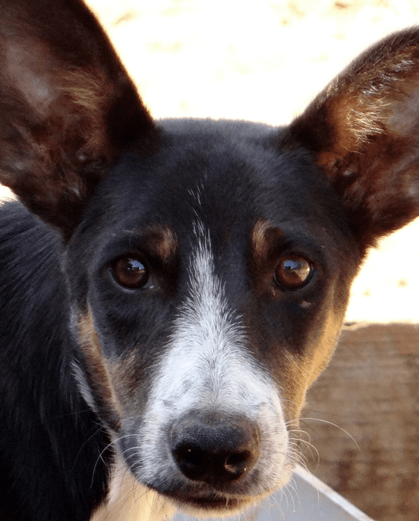 Michel is gevonden door Michel. November 2018.  Hij liep in Jongbloed op straat, iemand nam hem mee naar binnen maar bedacht zich de volgende dag en zette hem weer op straat. Gelukkig kwam Michel net langs en nu zit Michel veilig en met elke dag een volle buik bij DOG. Michel is het beste op z’n plek op de sanctuary waar hij lekker kan bazen over de puppies en zijn ‘gekke hond’ kan zijn…