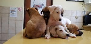 De pups waren ongeveer 7 weken. Iets te vroeg bij mama weg maar ze waren schuw en hoe langer ze dan wild blijven, des te moeilijker om ze te socialiseren. Eerst natuurlijk naar de dierenarts. Ze werden de Disneypups en kregen de namen Dutches, Melody, Belle, Nala, Dory en Feline; 6 dames!!
