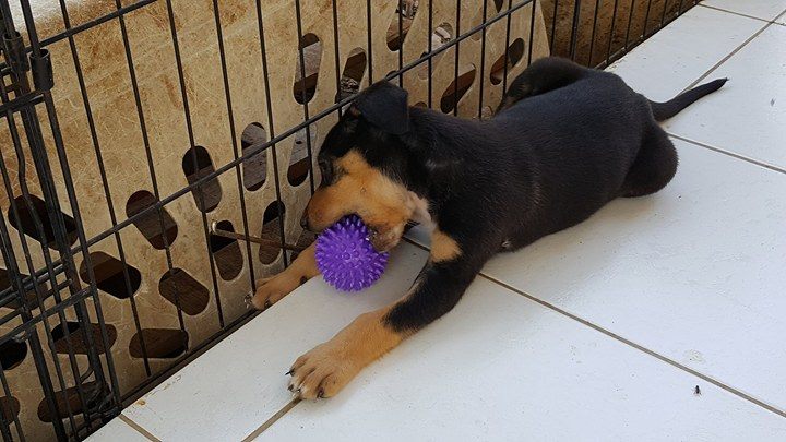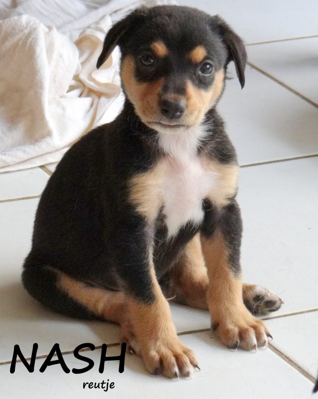 Op 10 april werd Noëlle gesignaleerd op Mundo Nobo. Ze had duidelijk pups en was ook 1 pup doodgereden in de buurt. Dus na zoeken vond Chantal het nestje, 5 zwarte en 1 blonde pup. De blonde had echter een open wond op de rug vol maden en maden eitjes. Dus ze moet echt naar een dierenarts.