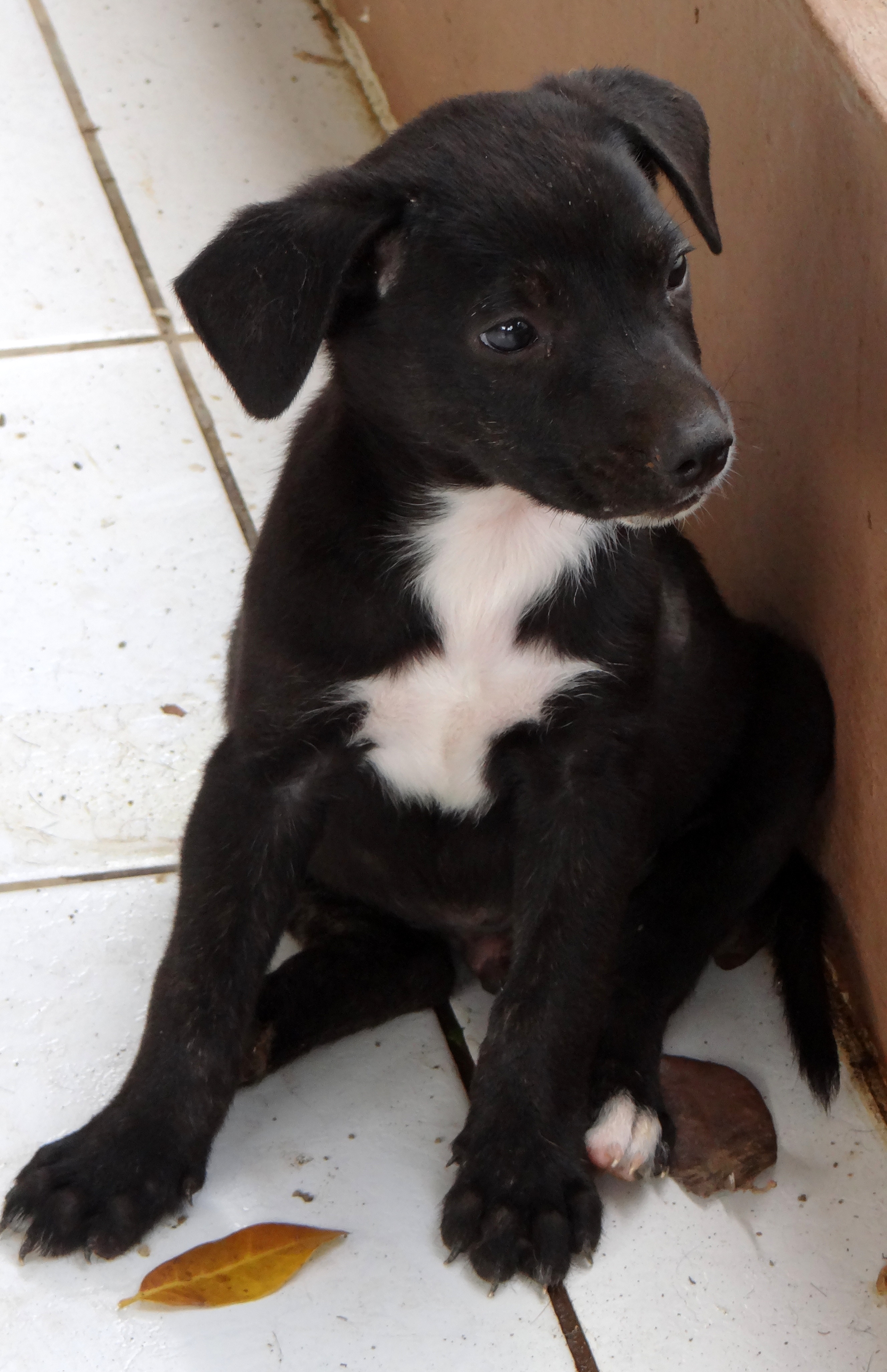 Op 10 april werd Noëlle gesignaleerd op Mundo Nobo. Ze had duidelijk pups en was ook 1 pup doodgereden in de buurt. Dus na zoeken vond Chantal het nestje, 5 zwarte en 1 blonde pup. De blonde had echter een open wond op de rug vol maden en maden eitjes. Dus ze moet echt naar een dierenarts.