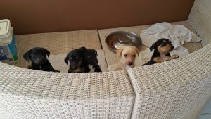 De pups hadden we zo mee en ook mama Noëlle was lief en aanhankelijk. Eerst naar de dierenarts. Daar zijn de maden met een pincet eruitgehaald en is de wond verschoond.