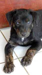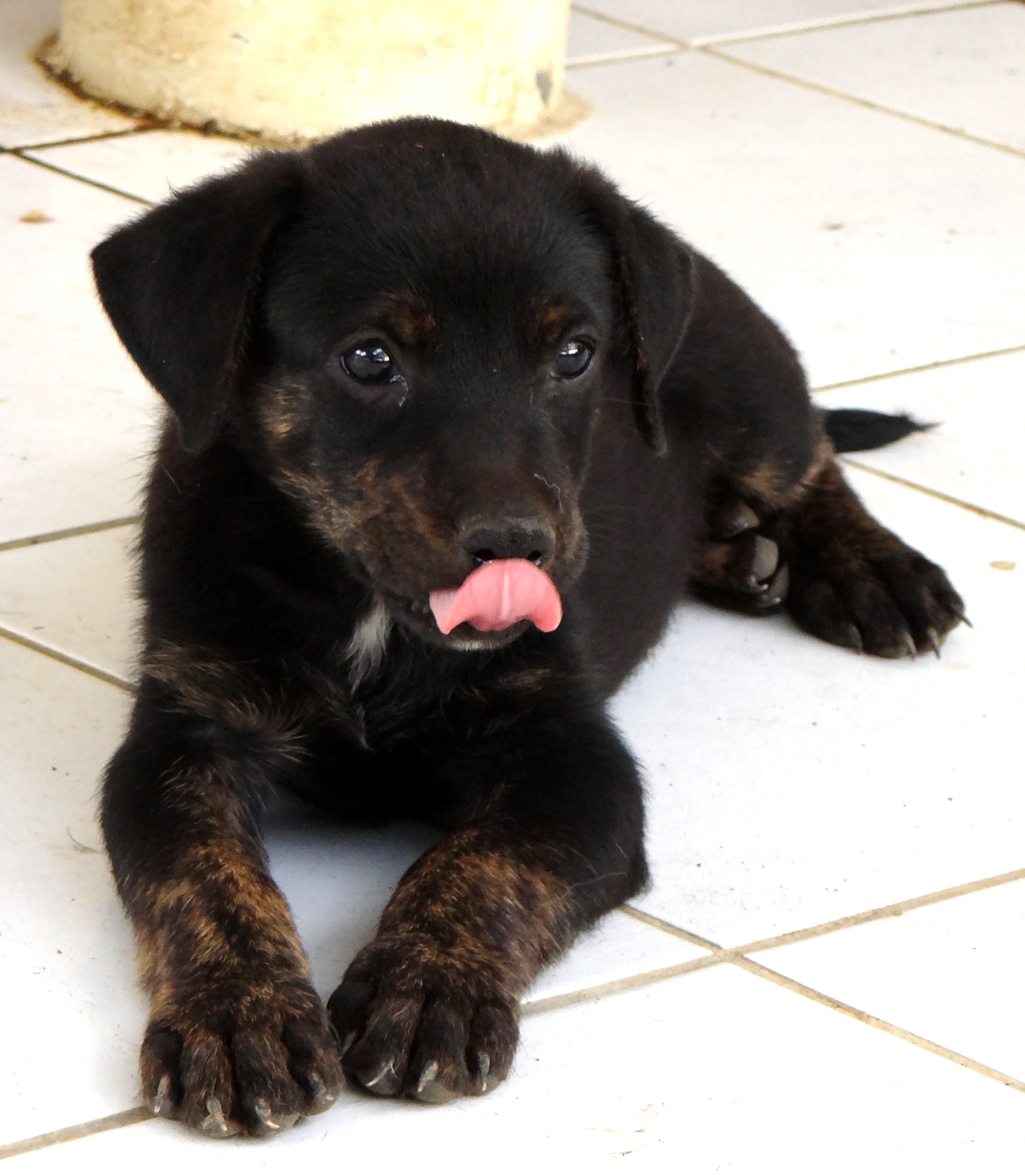 Op 10 april werd Noëlle gesignaleerd op Mundo Nobo. Ze had duidelijk pups en was ook 1 pup doodgereden in de buurt. Dus na zoeken vond Chantal het nestje, 5 zwarte en 1 blonde pup. De blonde had echter een open wond op de rug vol maden en maden eitjes. Dus ze moet echt naar een dierenarts.