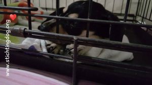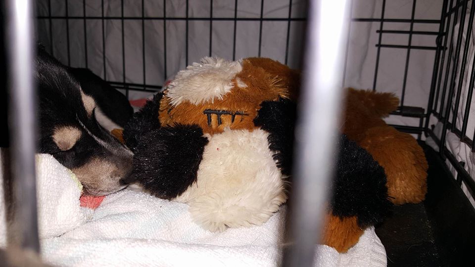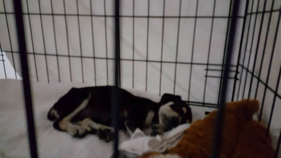 Helaas werd Paddy ziek, het leek op Parvo. Hij heeft nog aan het infuus gelegen maar de volgende ochtend was hij heen gegaan. R.I.P klein tenger manneke, je hebt zo hard gevochten …..