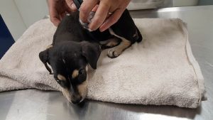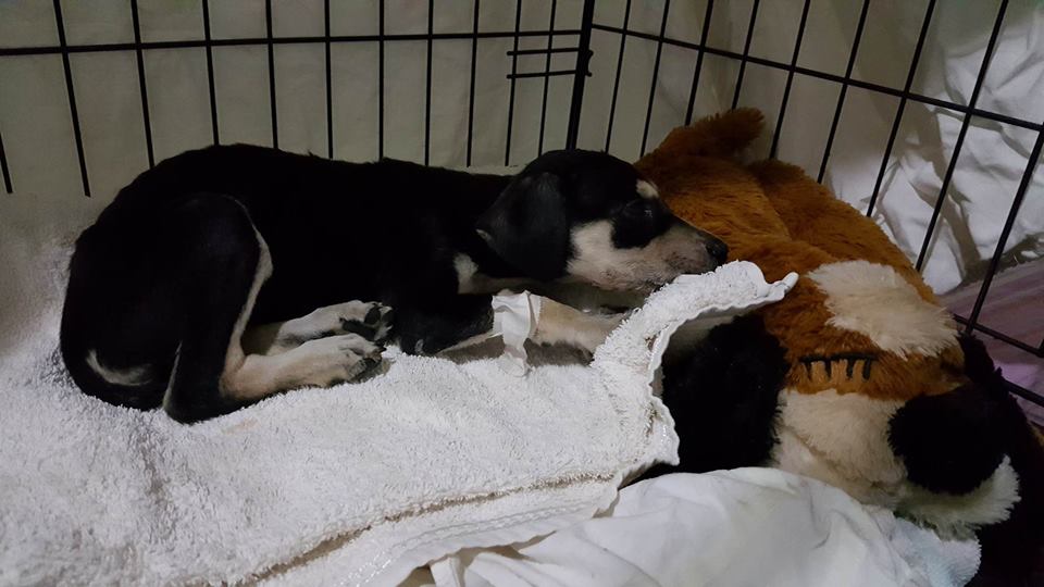 Fien en ik hebben ze uit de rotsen geplukt en in een (veel te kleine )bench gedaan, meteen naar de dierenarts.