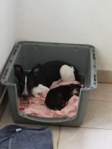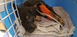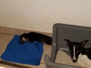 Parker werd na een 2 weken ziek. Parvoachtige symptomen. Hij heeft 10 dagen keihard gevochten en veel aan het infuus gelegen maar heeft het overleefd. En is nu bij zijn zusje, samen hebben ze een super plekje.