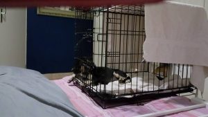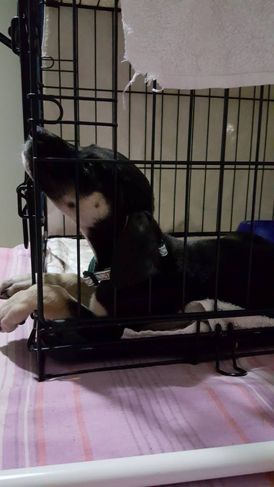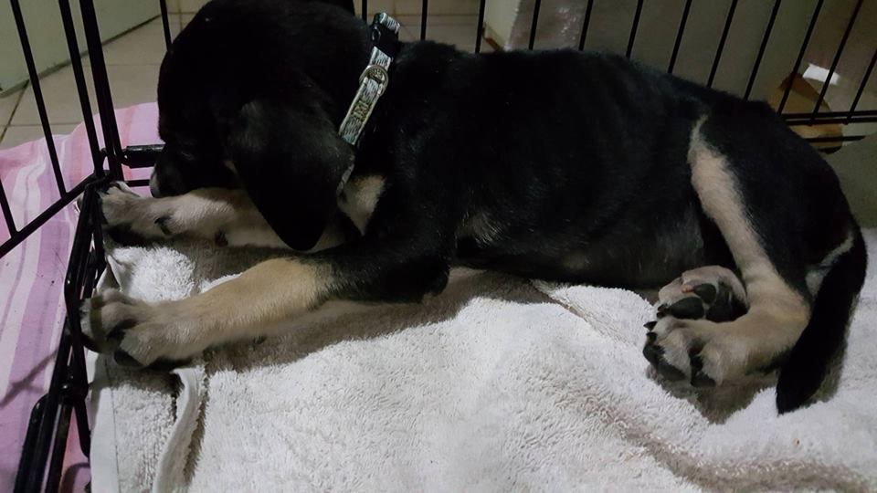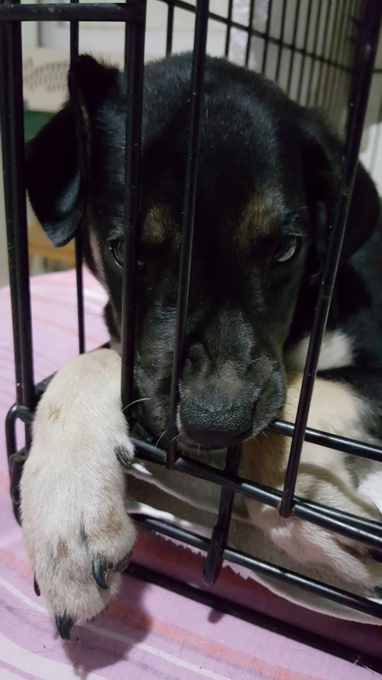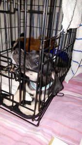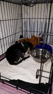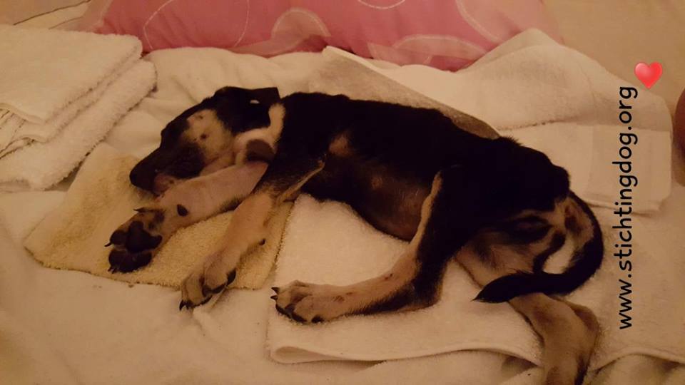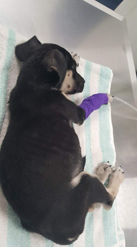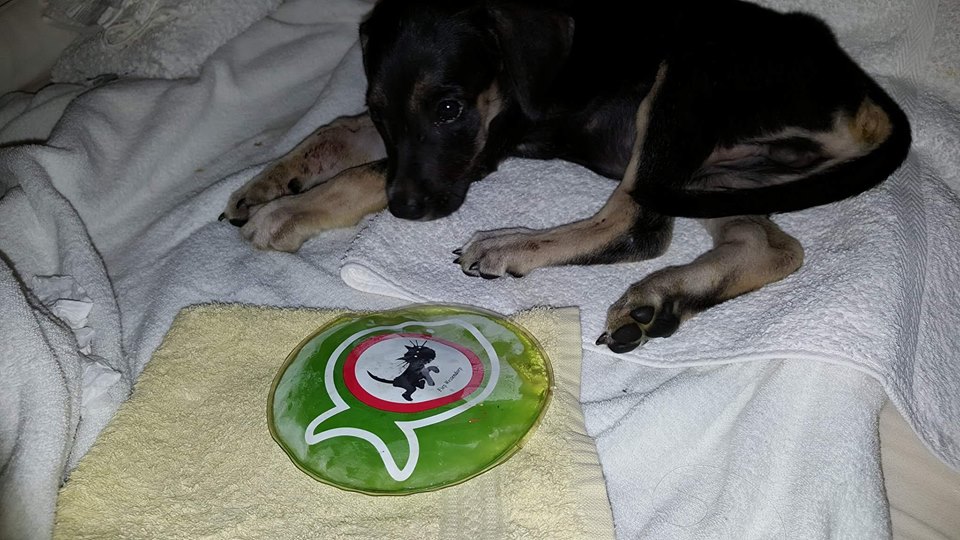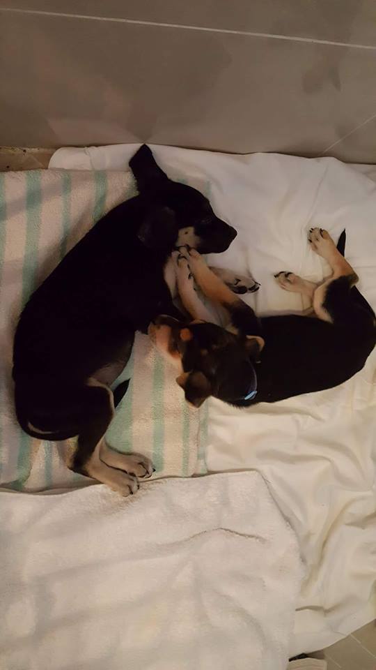 Fien en ik hebben ze uit de rotsen geplukt en in een (veel te kleine )bench gedaan, meteen naar de dierenarts.