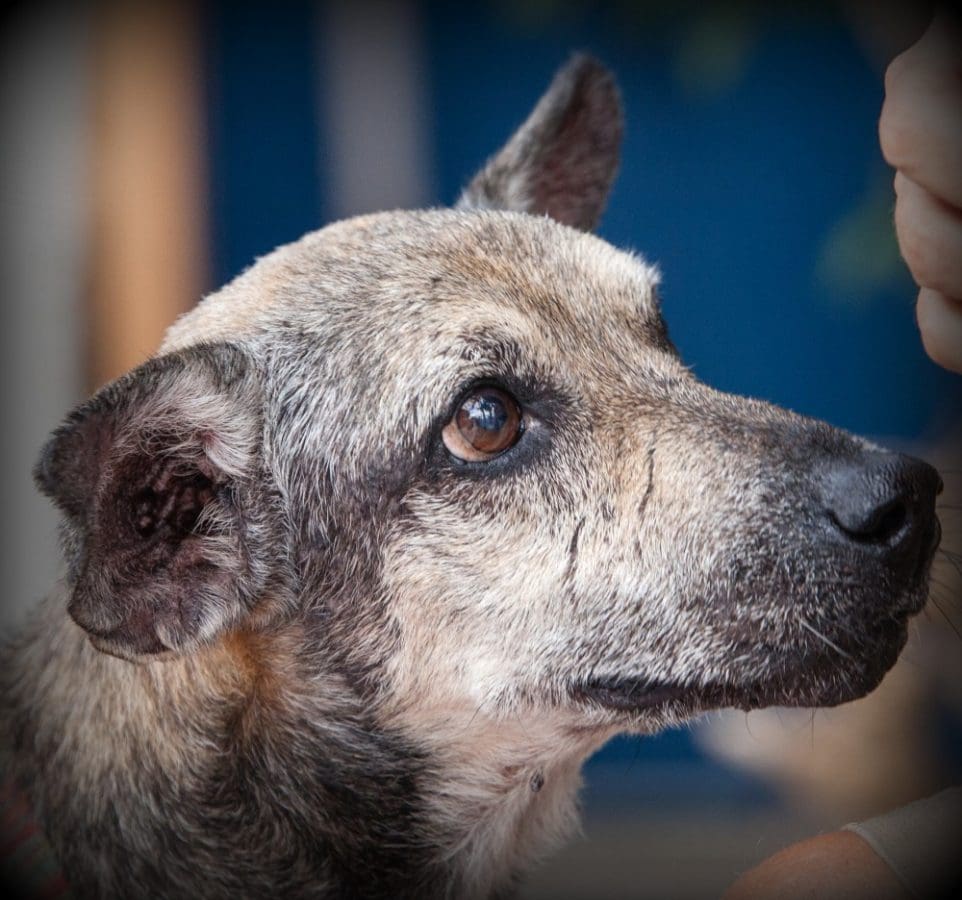 Ik wil jullie voorstellen aan Teddy. Een oude heer die heel wat mee heeft gemaakt en heel wat tegenslagen heeft gehad. Teddy werd opgemerkt in april 2011 en gemeld door een mevrouw die hem al een paar keer had gezien op de Teddy Rooseveltweg bij een snack. Zij kon het niet aanzien hoe dit hondje eruit zag. Ik ben gaan kijken en dit is wat ik zag: