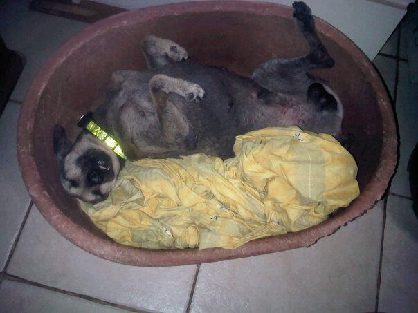 Maar helaas (en bij toeval) kwamen we er na een jaar achter (maart 2012) dat het niet goed ging met Teddy. Hij zat schuw en bang in de hoek van de tuin. De mevrouw kon hem niet goed behandelen omdat hij bang was en ook medicijnen geven lukte niet. Teddy is toen in huize DOG terecht gekomen. Maar Teddy was bang en boos en teleurgesteld en verdrietig. Heel zielig.