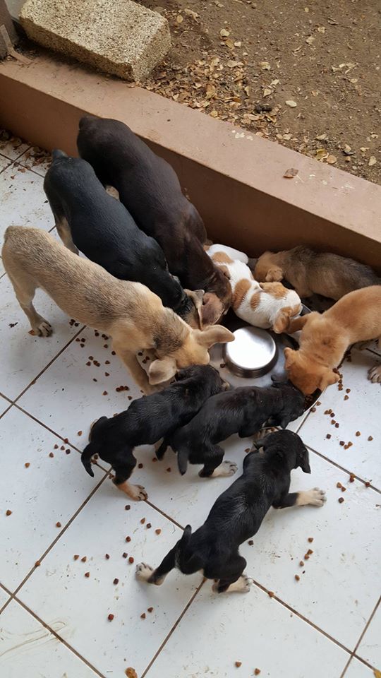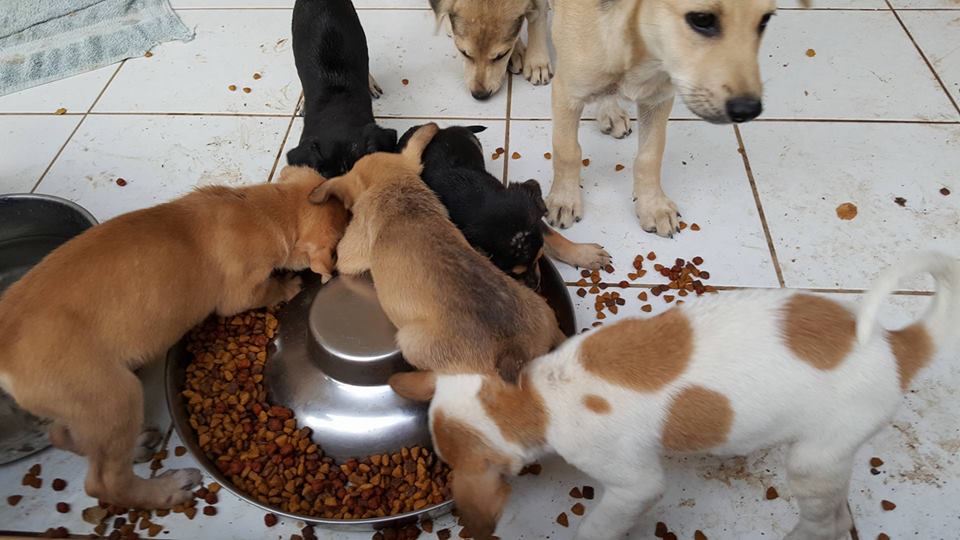 In de zomervakantie van 2017 belde een meneer mij op dat hij puppy’s had gevonden. Hij wist niet precies hoeveel het er waren maar iig zonder moeder gedumpt. Ik had in Huize DOG geen plek meer maar wilde de man graag helpen. Samen met Fien gingen we erheen en verwachtten een paar zielige pups te vinden. Tot onze verbazing zaten er 9 gezonde pups in de rotsen; 3 grote (de Royals) en 6 kleintje (de Piscas). We konden ze zo uit de rotsen ‘plukken’. De man vertelde dat hij 3x langs deze plek was gereden vandaag en toen was er niks en nu de 4de keer zaten er ineens 9 pups.