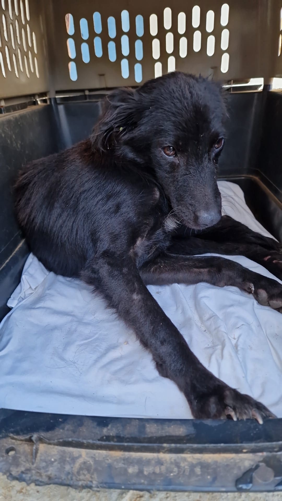 Rainy is gevonden door een van onze vrijwilligers, in de stromende regen, aangereden langs de weg. Uiteraard nam ze gelijk actie en nam Rainy mee. Bij de dierenarts bleek de klap meegevallen en met rust, lekker eten en veel liefde is het helemaal goed gekomen met Rainy.