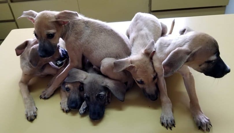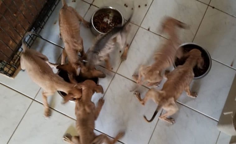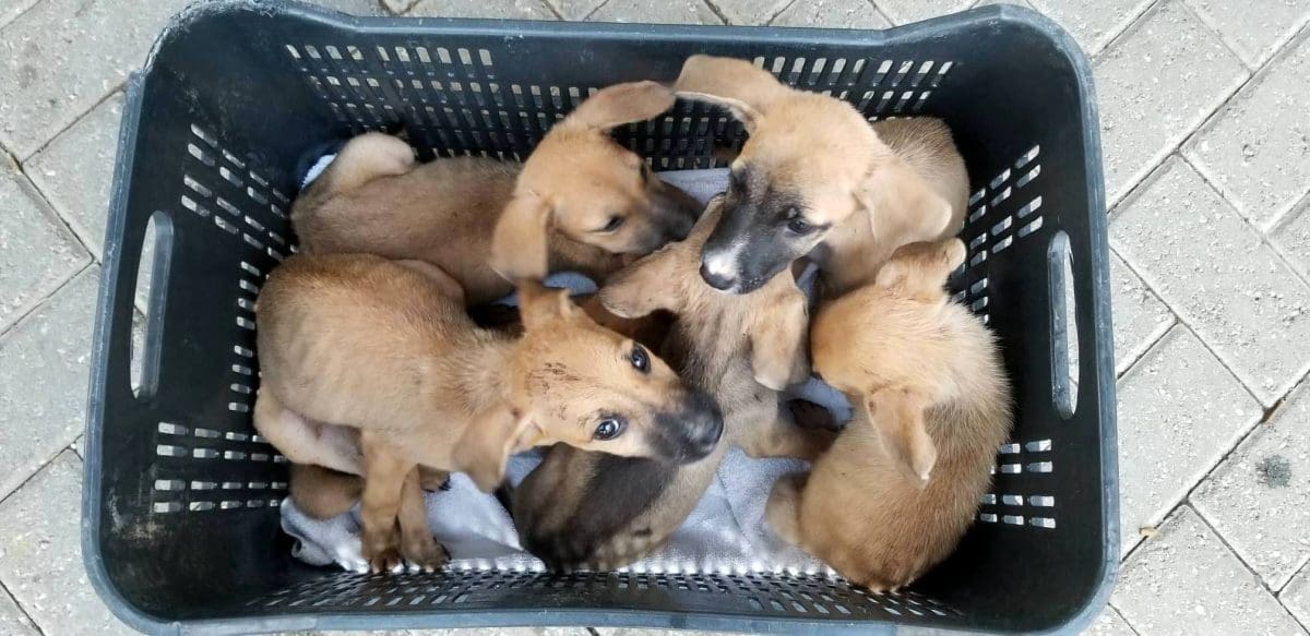 In juli 2018 werd ik gebeld dat er een nest van 6 pups gevonden was in Roi Rincon. Gedumpt naast hun overleden moeder die in een plastic zak zat. De pups kwamen bij mij brand-mager binnen. Ik besloot ze eerst te ontwormen en met frontline te sprayen en dan eerst te laten aansterken.