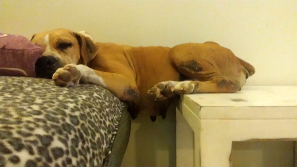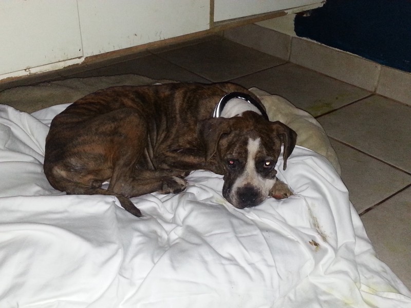 Uiteindelijk kregen we haar, 3 maanden na opsluiting, vrij. Ze was op sterven na dood. Broodmager, zwaar ondervoed en doodziek. Ze zit nu bij haar vriendin Tanja en na de nodige testen zijn we begonnen met haar behandeling. Ze is er slecht aan toe en als ze het redt, hopen we dat zee r niks of weinig aan over houdt.