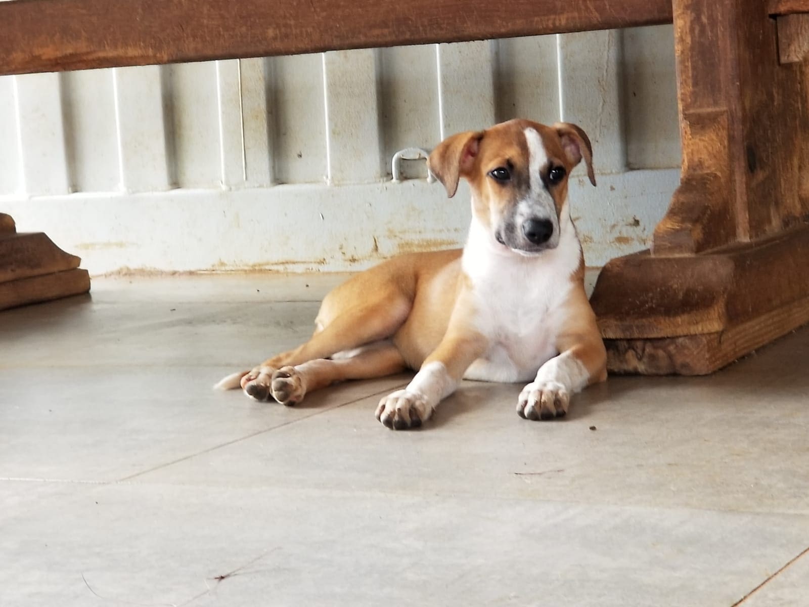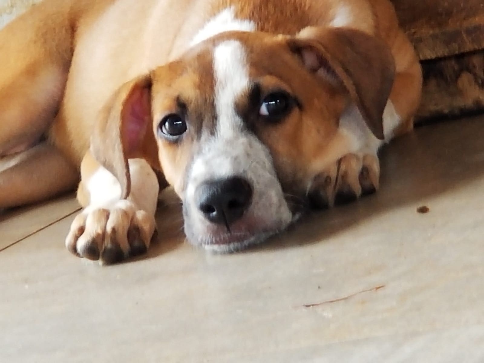 Samantha is samen met haar twee zusjes gevonden op het Kunuku Aqua resort. Het is niet de eerste keer dat daar hondjes komen aanlopen, die vervolgens bij DOG opgenomen worden. Stichting DOG heeft een bijzondere band met het resort, daar zij ook de bouw van de Sanctuary hebben verzorgt.