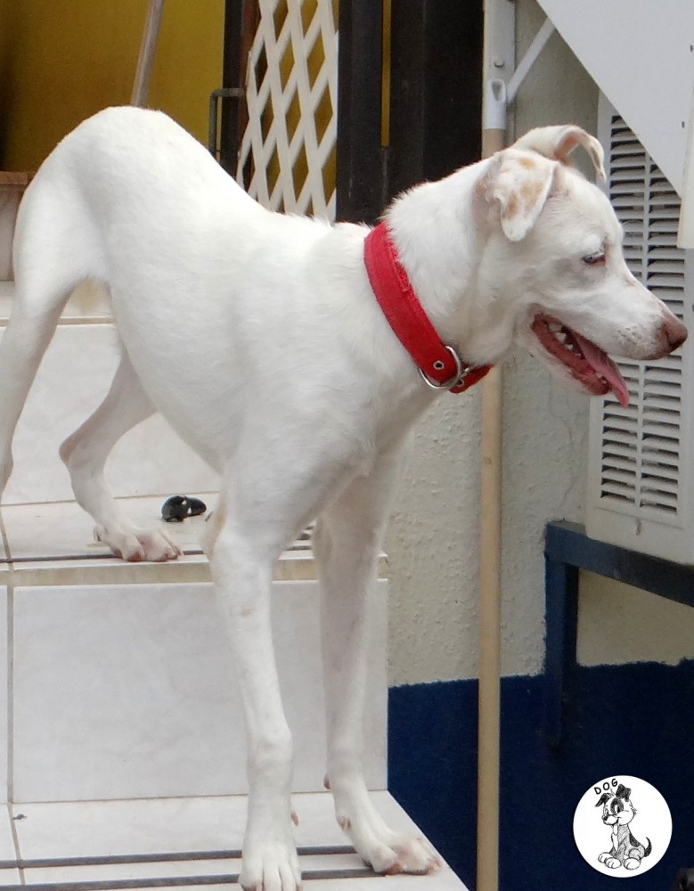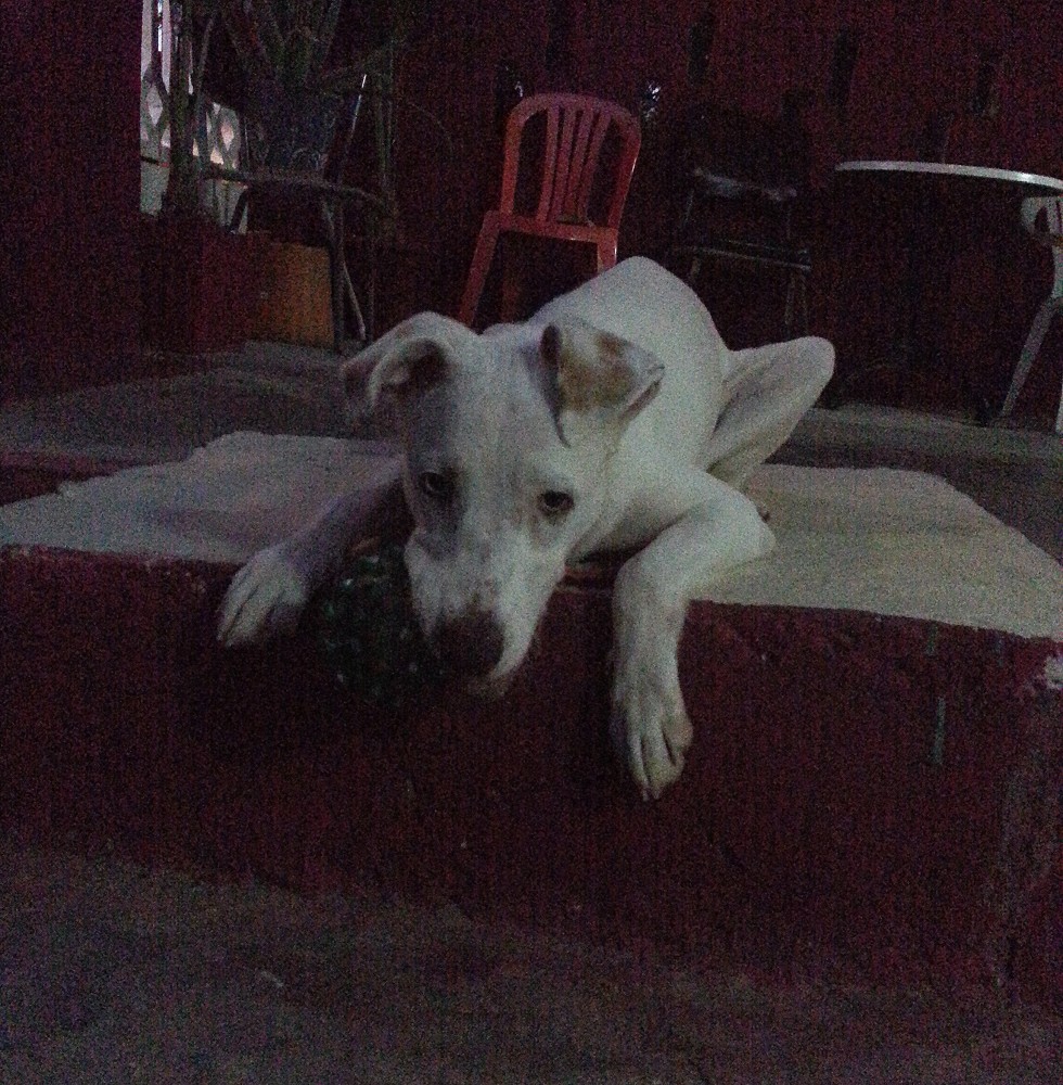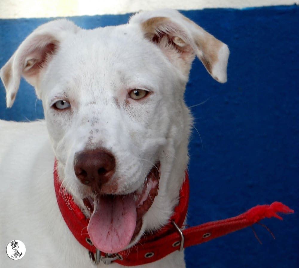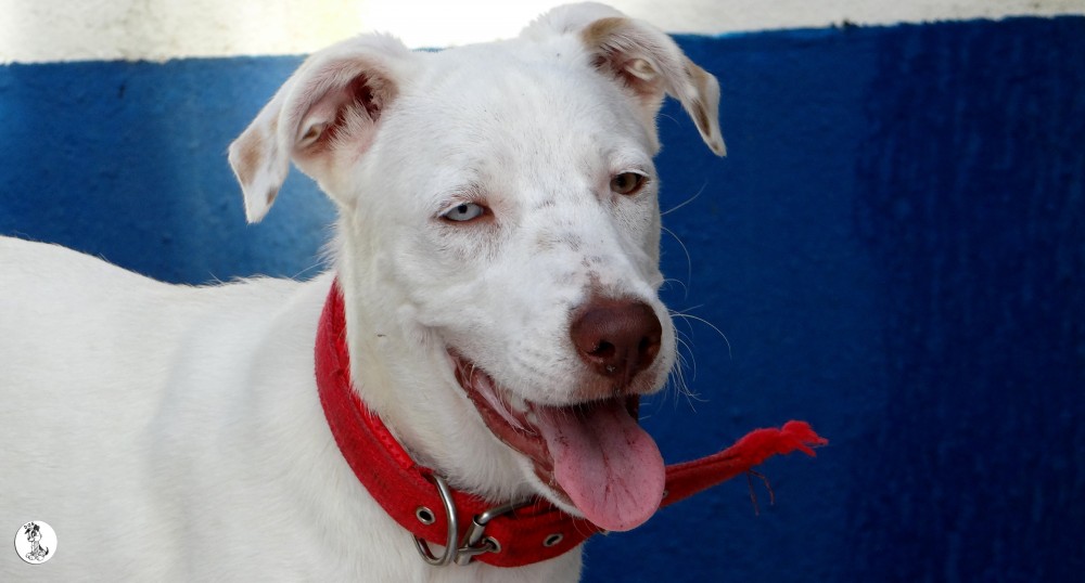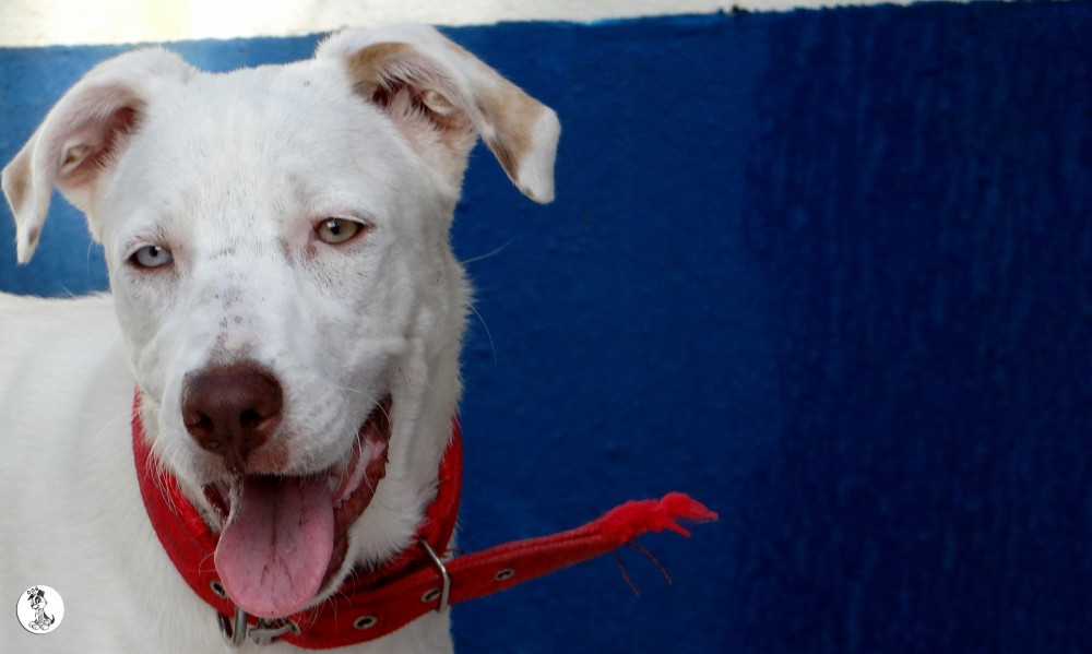 Ik heb eerst de artsen geraadpleegt en Sasha is geen albino en er is geen aanleiding om te denken dat ze blind zou worden. Desalniettemin vond haar baasje dat Sasha niet moest opgroeien in zo’n kleine ruimte. Ik heb Sasha toen meegenomen en geintroduceert in huize DOG. eerst was dat natuurlijk eng. Allemaal andere geurtjes en zoveel andere hondjes.