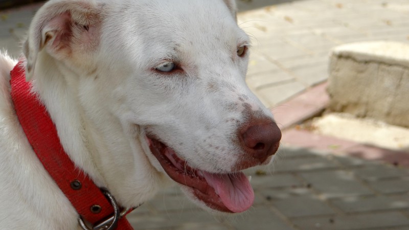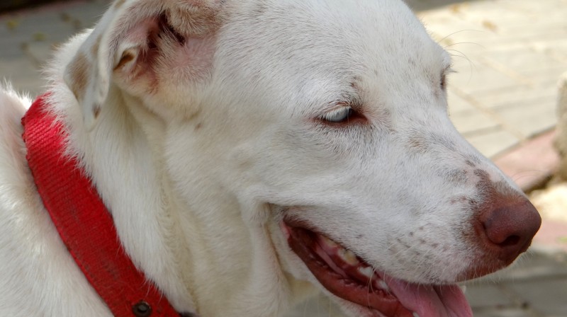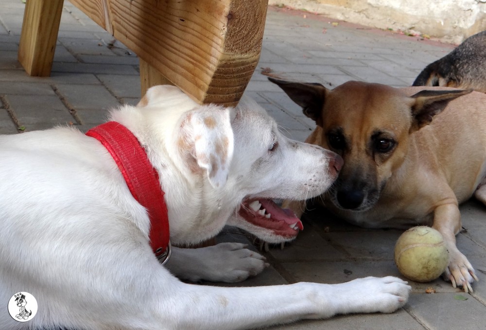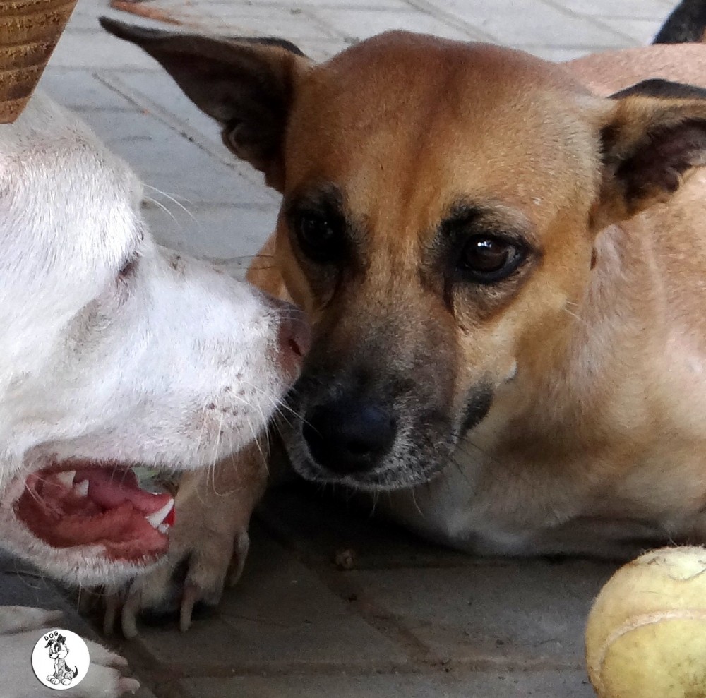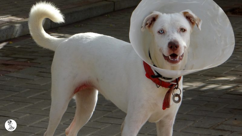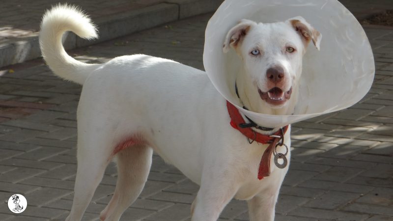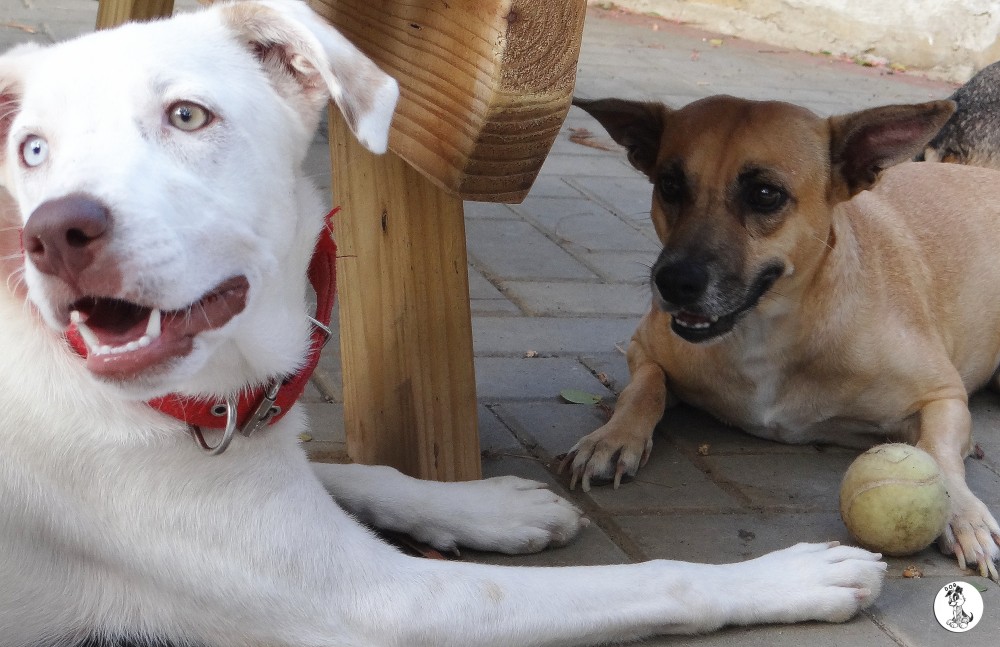 Ik heb eerst de artsen geraadpleegt en Sasha is geen albino en er is geen aanleiding om te denken dat ze blind zou worden. Desalniettemin vond haar baasje dat Sasha niet moest opgroeien in zo’n kleine ruimte. Ik heb Sasha toen meegenomen en geintroduceert in huize DOG. eerst was dat natuurlijk eng. Allemaal andere geurtjes en zoveel andere hondjes.