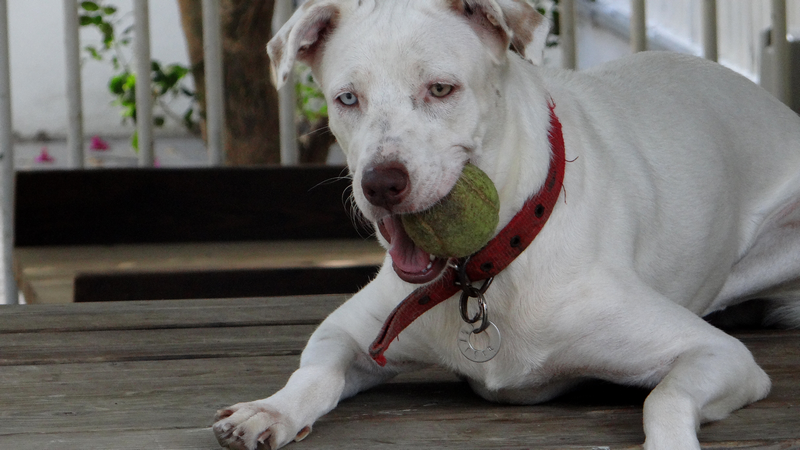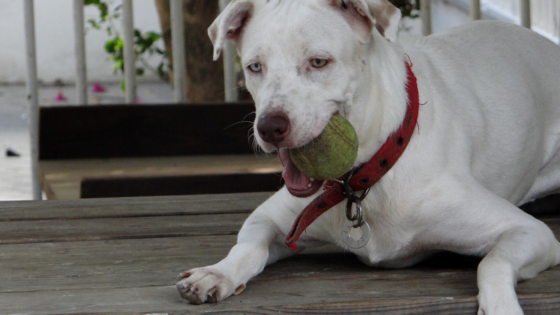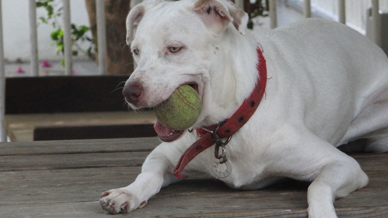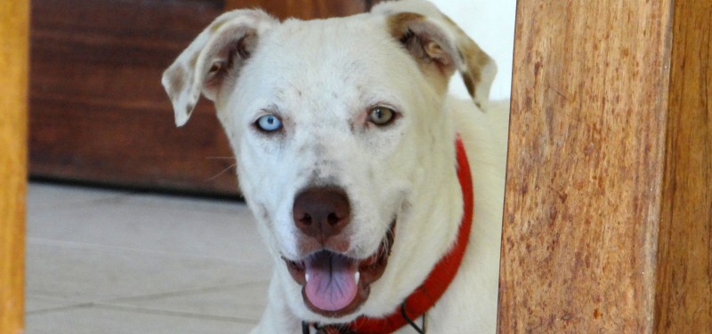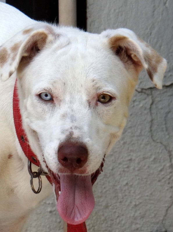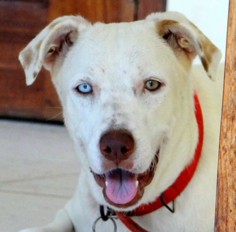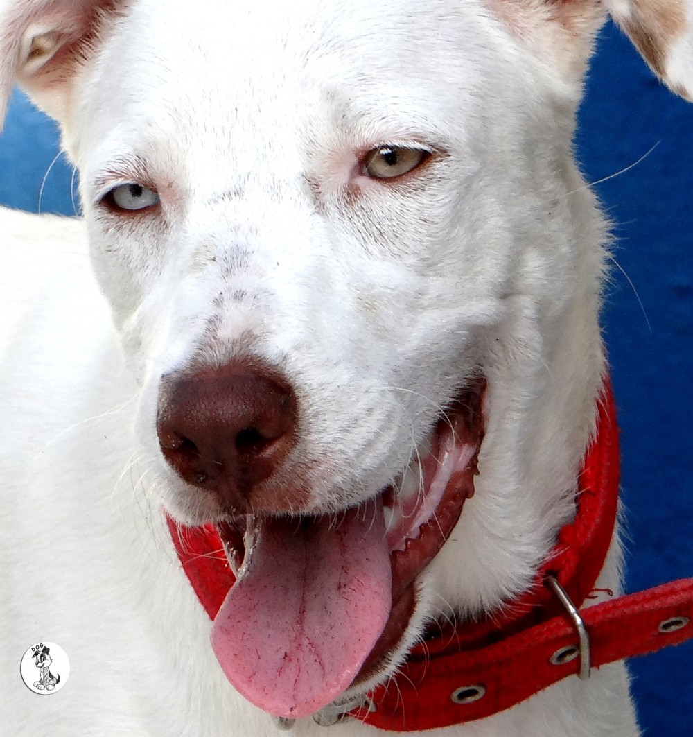 In februari 2015 kreeg ik een mailtje van een mevrouw die mij schreef dat haar buurvrouw een hondje had wat stokdoof is. Ze had haar nu een half jaar maar had nu al door dat ze niet voor het hondje kon zorgen. Niet alleen omdat hij doof was maar ook omdat ze geen tuin heeft en haar porch zo klein is dat er geen ruimte is om te spelen. Daarnaast had ze zich niet gerealiseerd dat hij “zo groot” zou worden. Sasha had ze kregen als cadeautje en ze was er super blij mee. Ze liet Sasha steriliseren toen ze 6 maanden was en kreeg toen te horen dat ze waarschijnlijk albino is en blind zou worden (Sasha heeft een geel en een blauw oog).