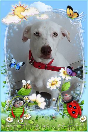 Sasha is een hele lieve speelse hond. Echt een pup die met 4 poten in het leven staat en het liefst wil stoeien en dollen. Sasha heeft 1 ding “tegen” ….. ze is doof, stokdoof. Daarom zijn haar reacties en acties soms wat anders dan andere honden, maar ze leert de commando’s nu in gebarentaal.