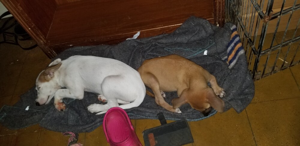 Maik en Myrthe zijn gevonden door Mike en Myrthe in Mahaai. De 2 zagen er goed uit dus het is een raadsel hoe ze daar gekomen zijn. Twee super lieve vrolijke puppy’s. Helaas kwam er een parvo uitbraak. Myrthe heeft er nauwelijks last van gehad. Maik heeft gevochten voor zijn leven, maar heeft het ook gehaald.
