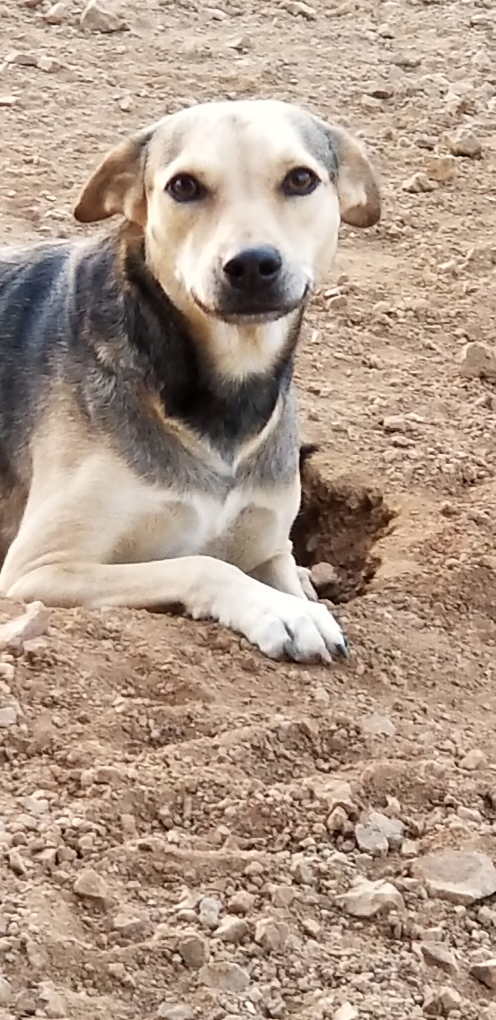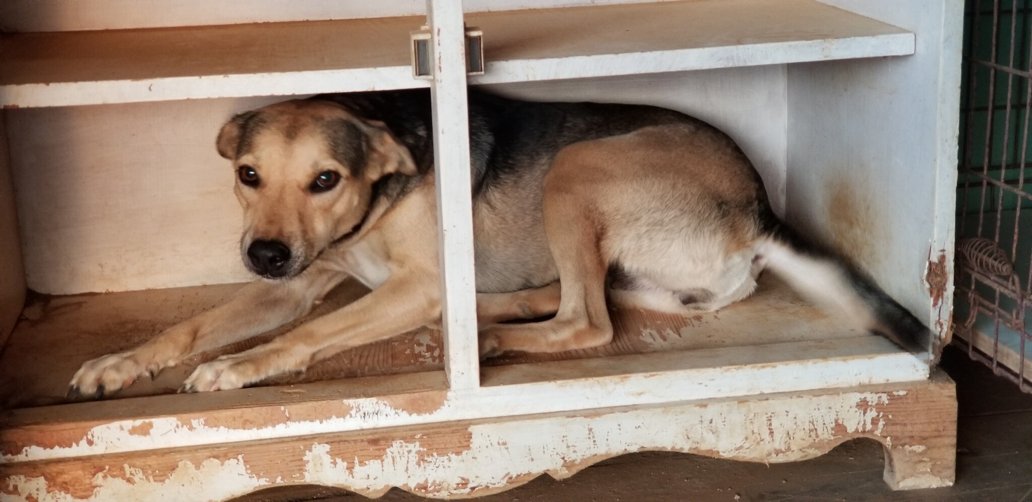 Via een meneer kregen wij de melding dat er een zwangere hond lag bij de benzinepomp van Barber. Ze werd wel gevoerd door iemand, en die persoon wist te vertellen dat dit al haar tweede zwangerschap zou zijn… We zijn gelijk gaan kijken en troffen haar aan. Ze stapte gemakkelijk de auto in en is gelijk naar de dierenarts gegaan. We hebben haar even bij ons gehouden voor haar herstel, maar konden het niet over ons hart verkrijgen deze lieverd weer terug te zetten op straat.