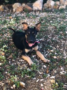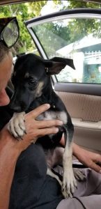 Op 13 november 2019 kregen we een PM dat er een pupje in Emmastad liep. Vrijwilligster Bineke en ik kwamen net van de dierenarts en reden langs Emmastad. Natuurlijk gingen we meteen kijken en daar liep ze. Midden op straat vol met teken. Ze was niet bang, kwam meteen naar me toe en we konden haar zo meenemen. Binke is haar gaan fosteren en vandaaruit is ze naar haar for ever home in NL gevlogen.