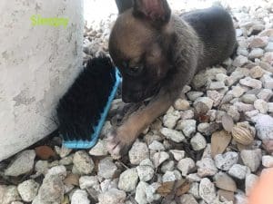 Kelly vond een nestje van 5 hele kleine hummeltjes bij Bullenbaai. Ze nam ze meteen mee en vroeg om hulp. Ze wilde ze zelf fosteren dus dat was helemaal geweldig. Bij haar thuis heeft ze met bierkratjes een puppyren gemaakt en daar groeiden de kleintjes helemaal super met elkaar op.