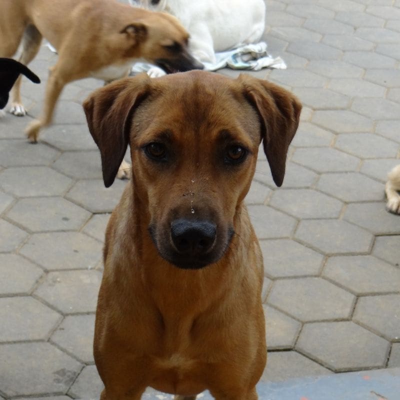 Door haar handicap moet ze wel even wennen aan nieuwe mensen, maar eenmaal gewend is het ok. Ze is een mooi hondje.