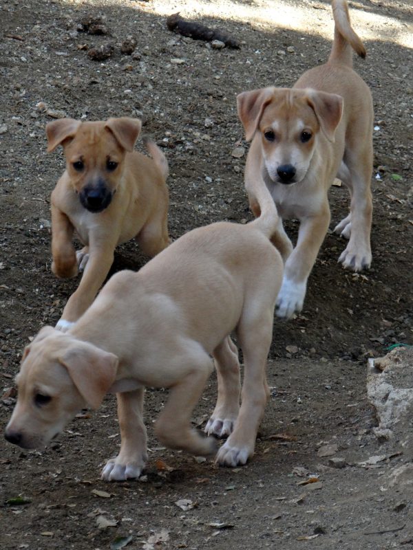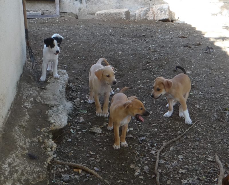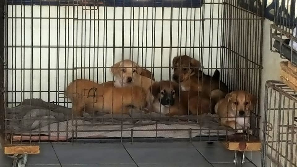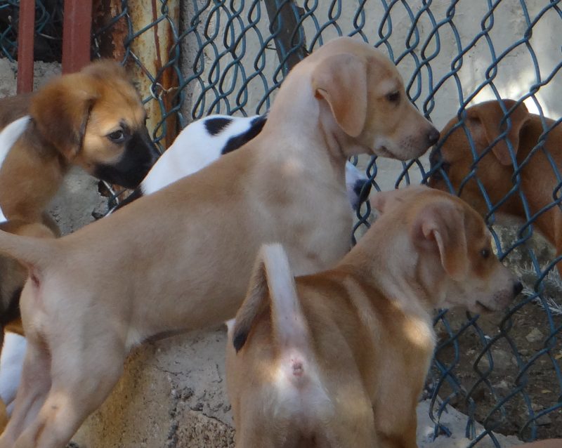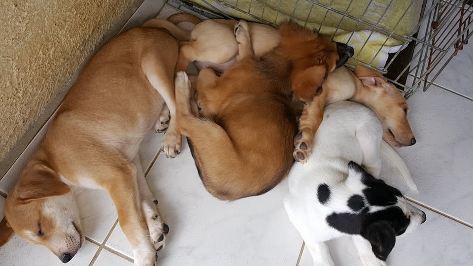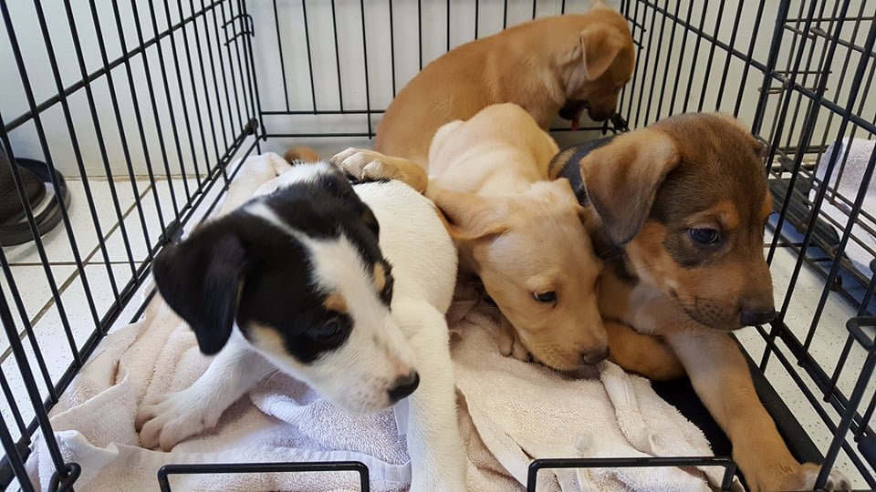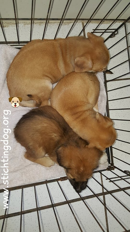 Het vangen was niet een heel moeilijk, maar de pups waren wel al ontzettend bang voor mensen. De pups waren verder gezond en konden na het dierenartsenbezoekje meteen mee. Ze waren zo bang in het begin, dat ze wegdoken achter en onder benches. En als die er niet waren kropen ze zover mogelijk in de hoek.
