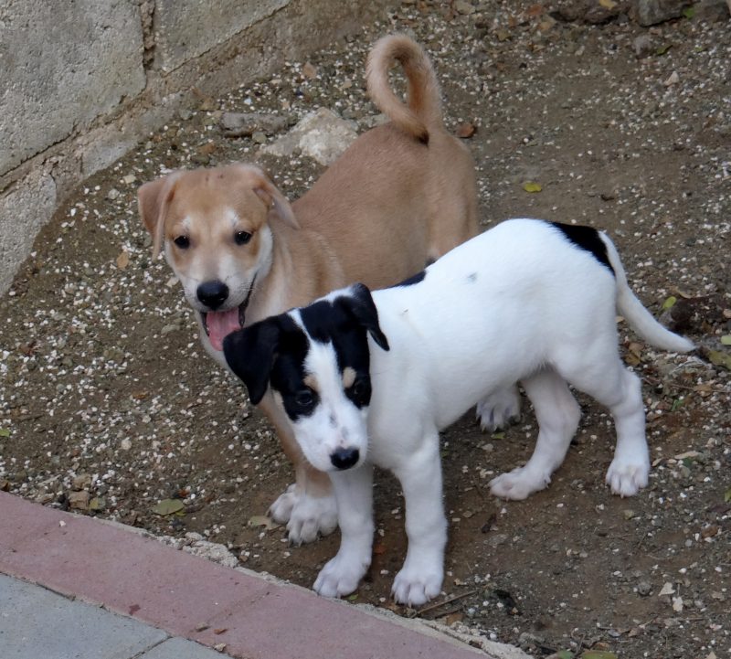 Maar na een paar dagen werden ze wat losser en zeker als Noelle erbij was, waren ze helemaal happy. Ze kregen wel giardia, dus het was heel veel poep ruimen. Maar na de giardiakuur konden ze geent worden. En lekker spelen.