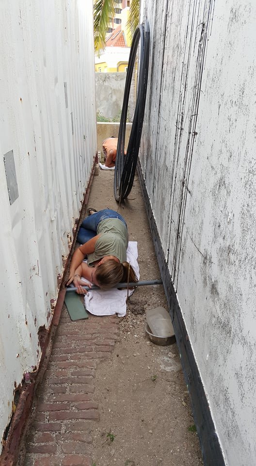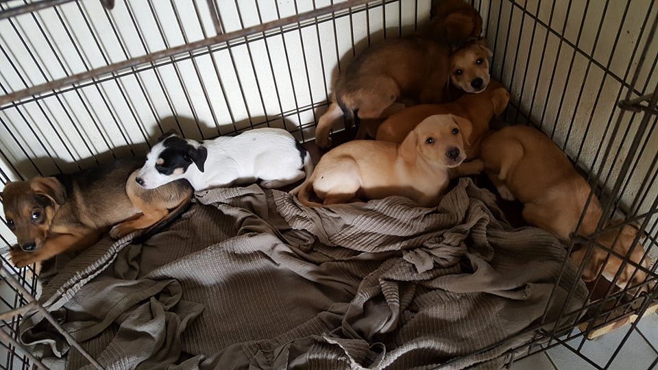 De melding was binnen gekomen bij Feed Friends Foundation: moederhond in Punda, zeven pups onder een container. Er was echter nergens opvang. Na 8 weken is er besloten de pups toch weg te halen want anders zouden er straks 7 “wilde” honden extra zijn en moeilijk te vangen. Moederhond leeft prima in de stad maar moest wel gesteriliseerd worden.