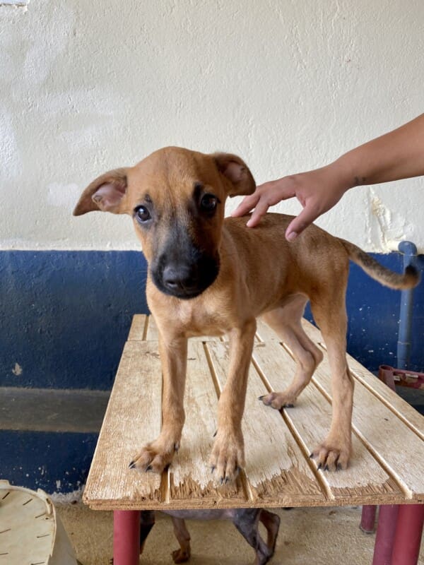 De Tebenk pups zijn gevonden op 15 mei 2021 in de Tebenkstraat waar ze op straat voor de muur van een huis lagen met hun moeder. Ze lagen echt levensgevaarlijk dicht bij de weg en daar achterlaten was dus geen optie. Daarbij zagen een aantal pups er op het eerste gezicht al niet goed uit…