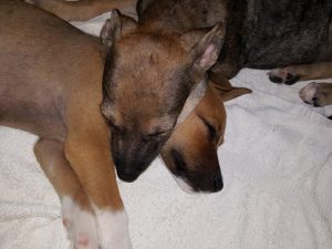 Meteen naar de dierenarts en redelijk gezond ( wat vlooien en luizen, bloedarmoede en moe) kom je in Puppy Paradise. Eerst maar even lekker een nachtje bij komen. Morgen wil je vast spelen met de anderen.