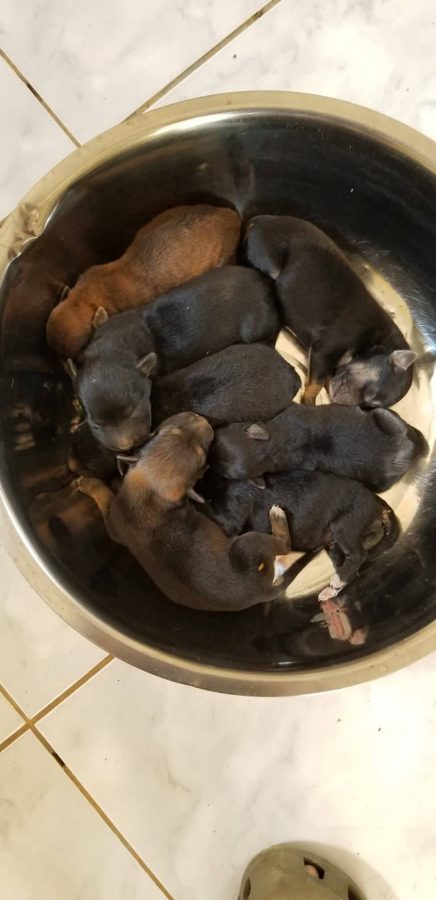 Er kwam een melding binnen dat er een moederhond bij het Tulamuseum lag met 7 pups. Ik ben ze gaan halen. Mama Tula was een super lieve mama, en de hondjes waren prachtig. Ze heeft zelfs 2 fosterpups laten drinken.