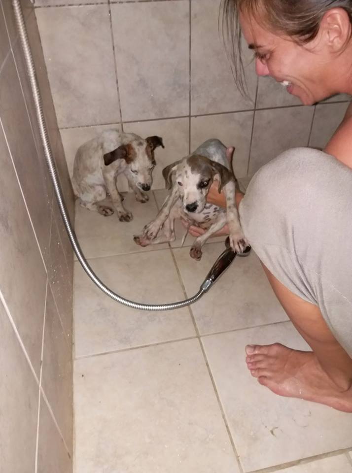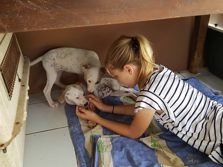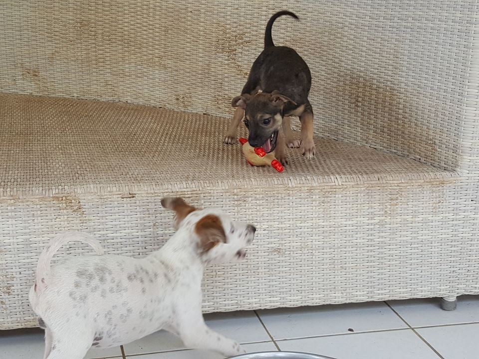Tracy en Tony en Tammy zijn op 3 maart 2017 gevonden door Kyona bij de shut van Koraal Specht. Ze hebben een week bij Kyona gezeten, ontwormt en aan de doxy en na een week kwamen ze in huize DOG. Daar zijn ze heerlijk aan het eten gegaan, en spelen en lekker ravotten.
