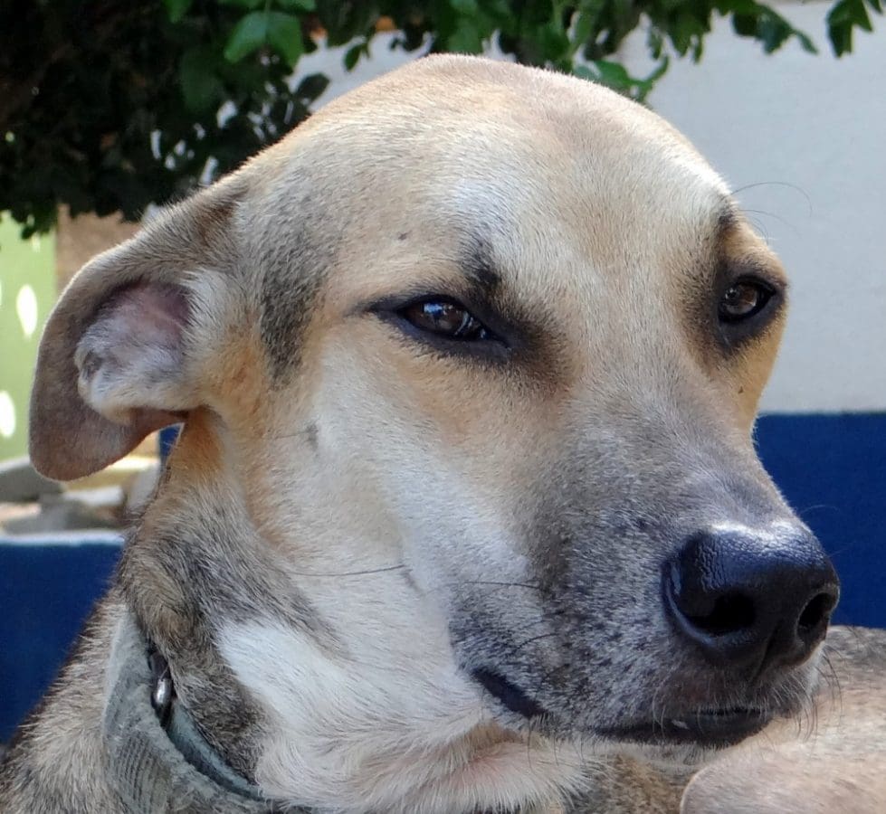 Tummy is een slanke mooie hond met een heel zacht en lief karakter. Hij is verlegen en moet altijd wennen, komt heel voorzichtig naar je toe. Hij vindt knuffelen heerlijk.