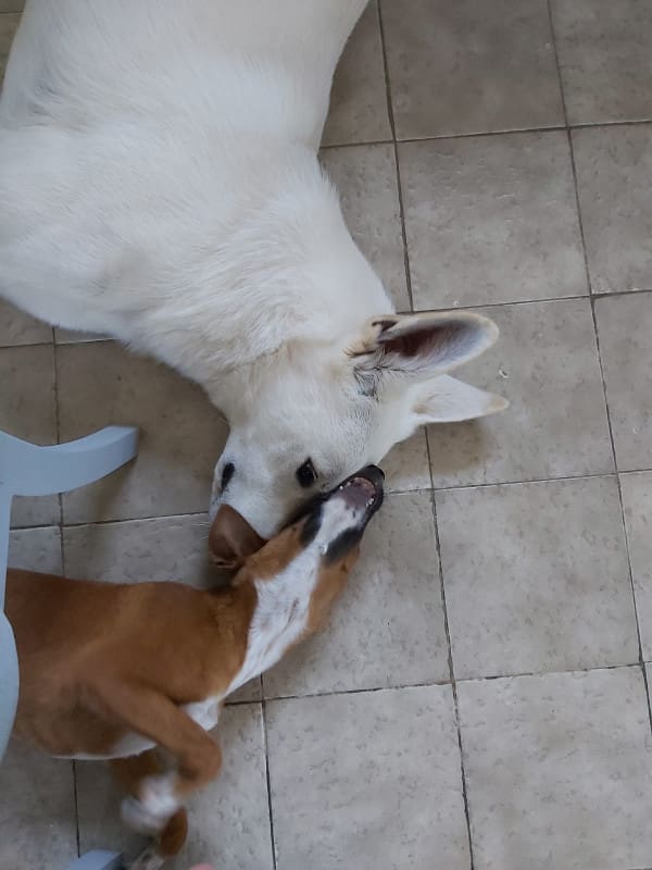 Twanny kwam toen naar de DOG Sanctuary, dat was in april 2020. Twanny speelt erop los met soortgenootjes, maar is echt toe aan een eigen gouden mand.