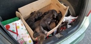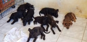 Op 4 november 2019 was er op het hele eiland een stroomstoring. Die zou tot ’s nachts duren… dus ik had om 18:00 uur alles netjes af, klaar en voorbereid op een donkere nacht. Op dat moment komt er een dame met dochter aan het hek. Zij hadden in de auto 7 pups, gevonden op de Bullenbaaiweg. Er zou er nog 1 lopen maar die konden ze niet vangen. Een puppy achterlaten is geen optie dus uiteindelijk zijn de dame en dochter terug gegaan om die ene te zoeken en ik ben heel snel de 7 pups nexgard en ontworming gaan geven en heb de kamer ingericht.