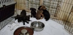 Na een klein uurtje kwam de dame terug met nog 2 pups… totaal 9 pups erbij! 2 Bruine en 7 zwarte, 4 reutjes en 5 teefjes