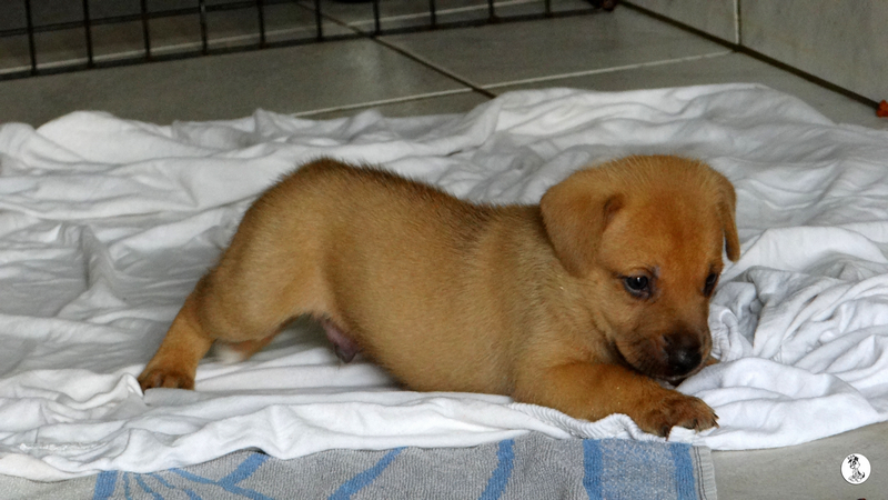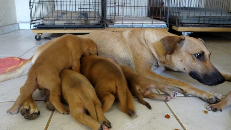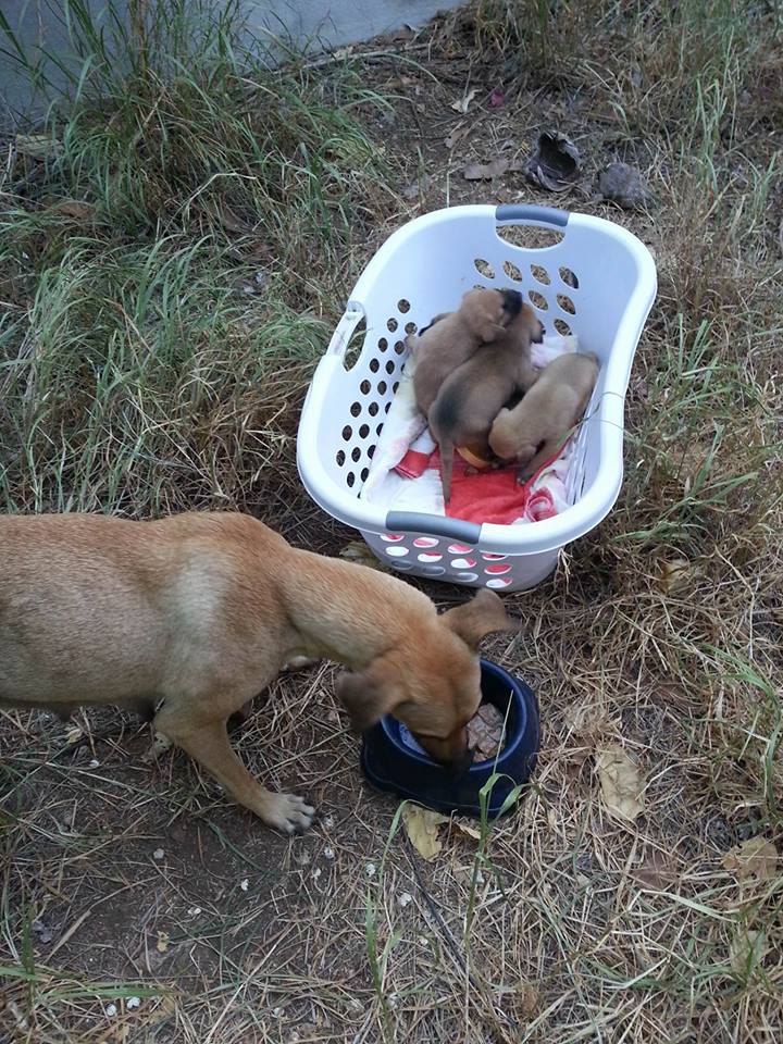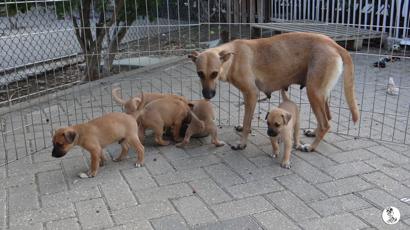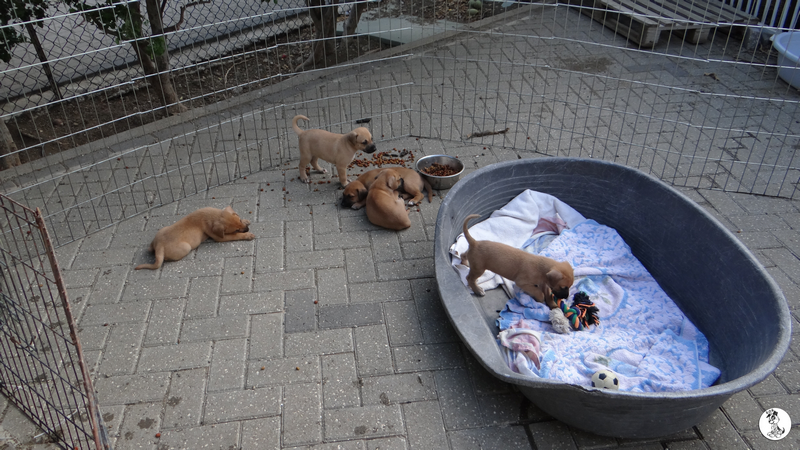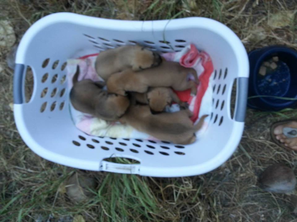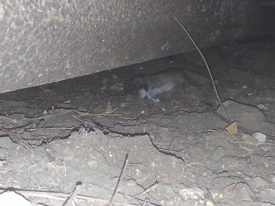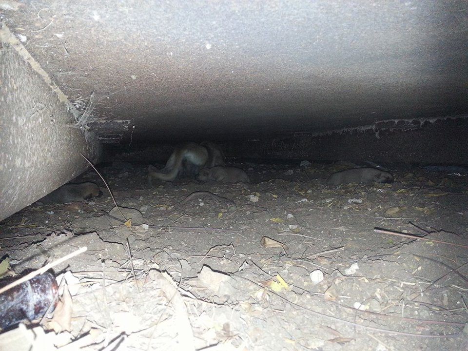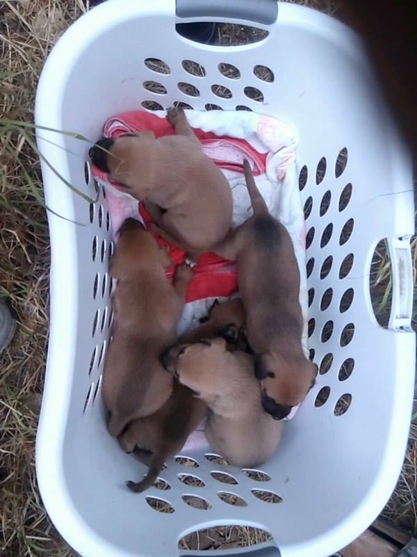 De volgende dag ben ik met Fien gaan zoeken en we vonden 5 pups onder de container. Fien zag ze het eerst en mama Wendy lag er bij. Ze lagen ver naar achter en we konden er niet bij.