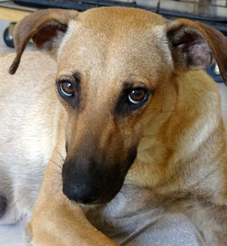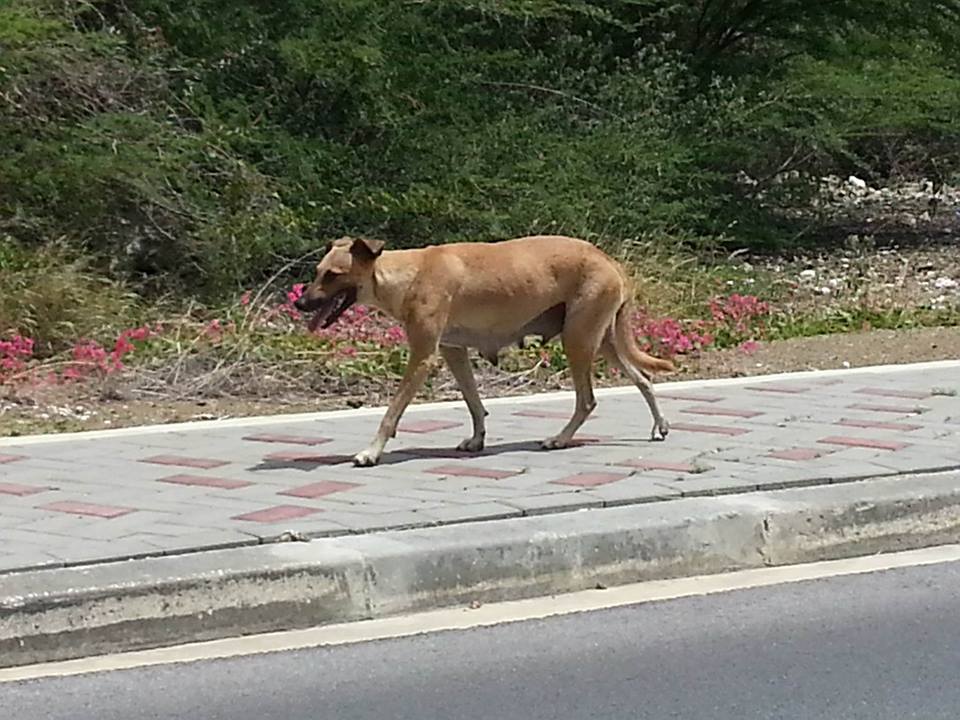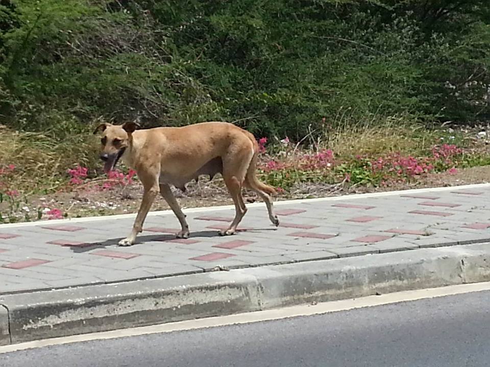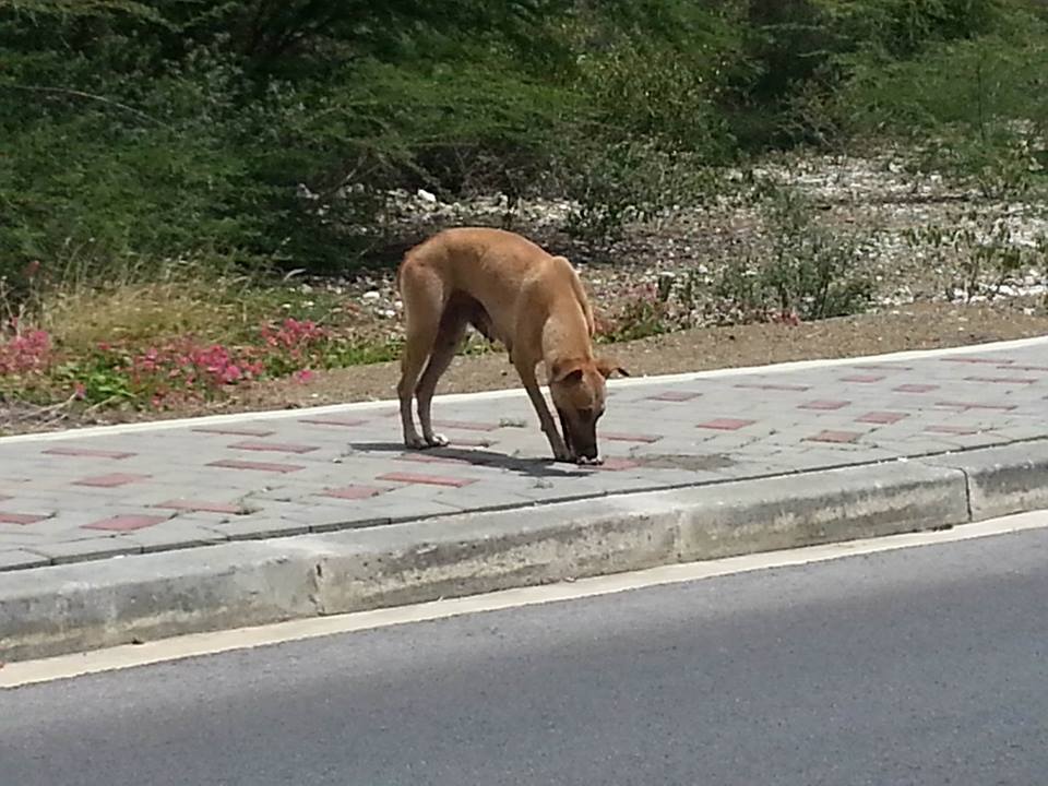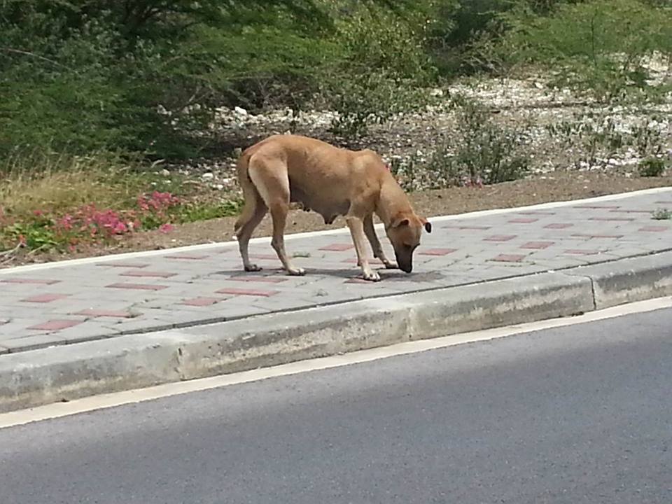 Op een warme middag, ben ik opzoek naast Pirate bay , naar een pup die daar gezien was. Ik heb de pup niet gevonden maar wel zag ik deze hond in rap tempo lopen. Ze stopte wel om mijn blikvoer te eten , maar twijfelde eerst. Blijkbaar was honger even doorslaggevend. Daarna liep ze in rap tempo naar het WTC terrein, achter de containers.