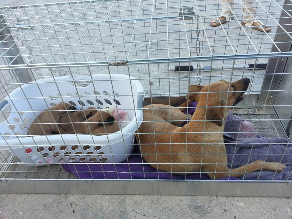 Het CNSJ festival zat er aan te komen en de stress om ze daar weg te halen werd groter. Ook liep er een zwangere zwarte hond op het terrein dus reden om een vangactie te organiseren. Samen met Dyveke van Feed Friends Foundation en Jose, stonden wij zaterdagochtend 27 aug 2016 om 5 uur op de parkeerplaats helemaal klaar om te gaan vangen. De zwarte hond kreeg tranquigel en na een uur sliep ze. We hebben nog wel de vangstok gebruikt want ze hapte maar uiteindelijk lag ze in de bench.